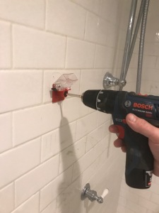 Mounting hardware in ceramic tile, glass tile, or natural stone.